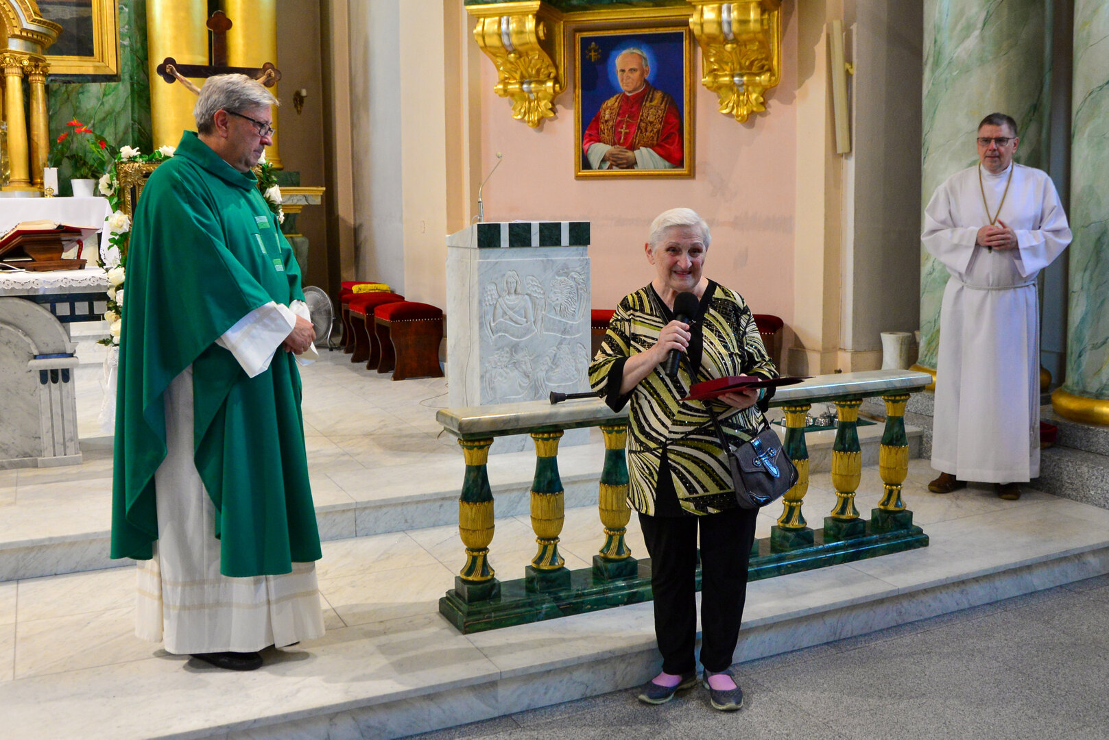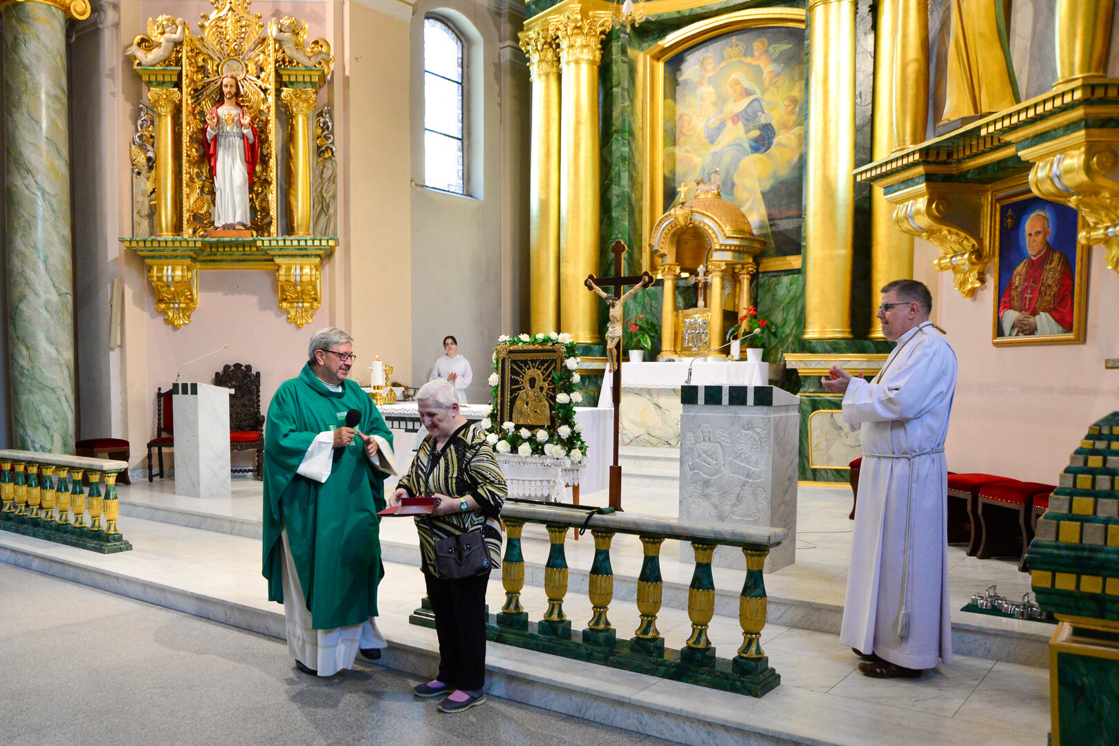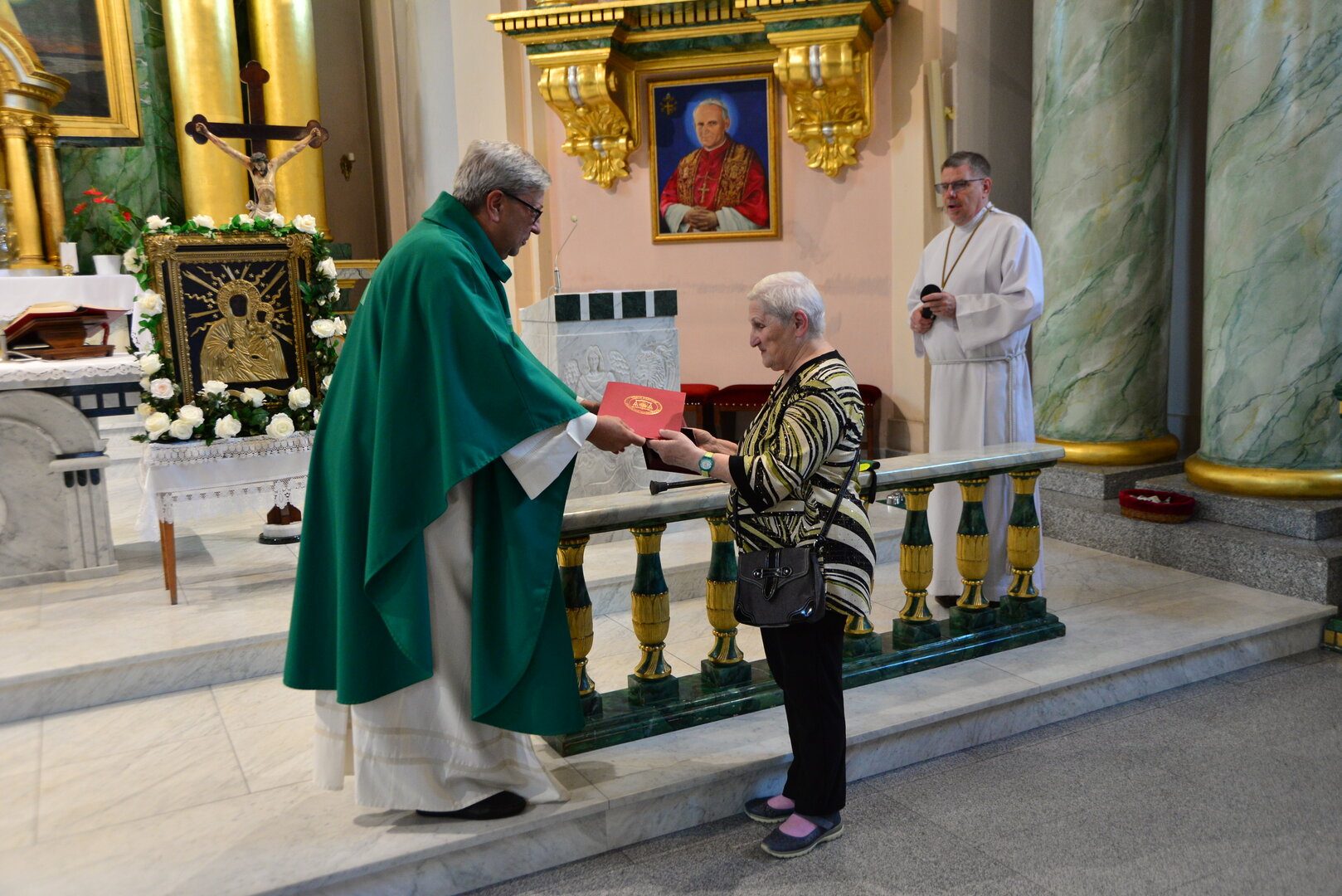 Medal w imieniu ks. Biskupa, Pani Aleksandrze, wręczył Proboszcz parafii, ks. kanonik Karol Glesmer.